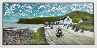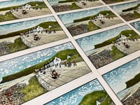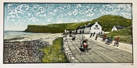 Inspired by the 2024 British Cycling National Championship races, this print shows the women cyclists on the descent from Brotton just before the steep climb up Saltburn Bank.