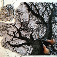 The inspiration for this linocut print is a lovely Cherry Tree seen on a woodland path in the woods in Saltburn, North Yorkshire. These linocut prints are handmade from start to finish - hand carved, inked and handprinted, and as such they will have small variations between prints - making each print into a unique artwork.