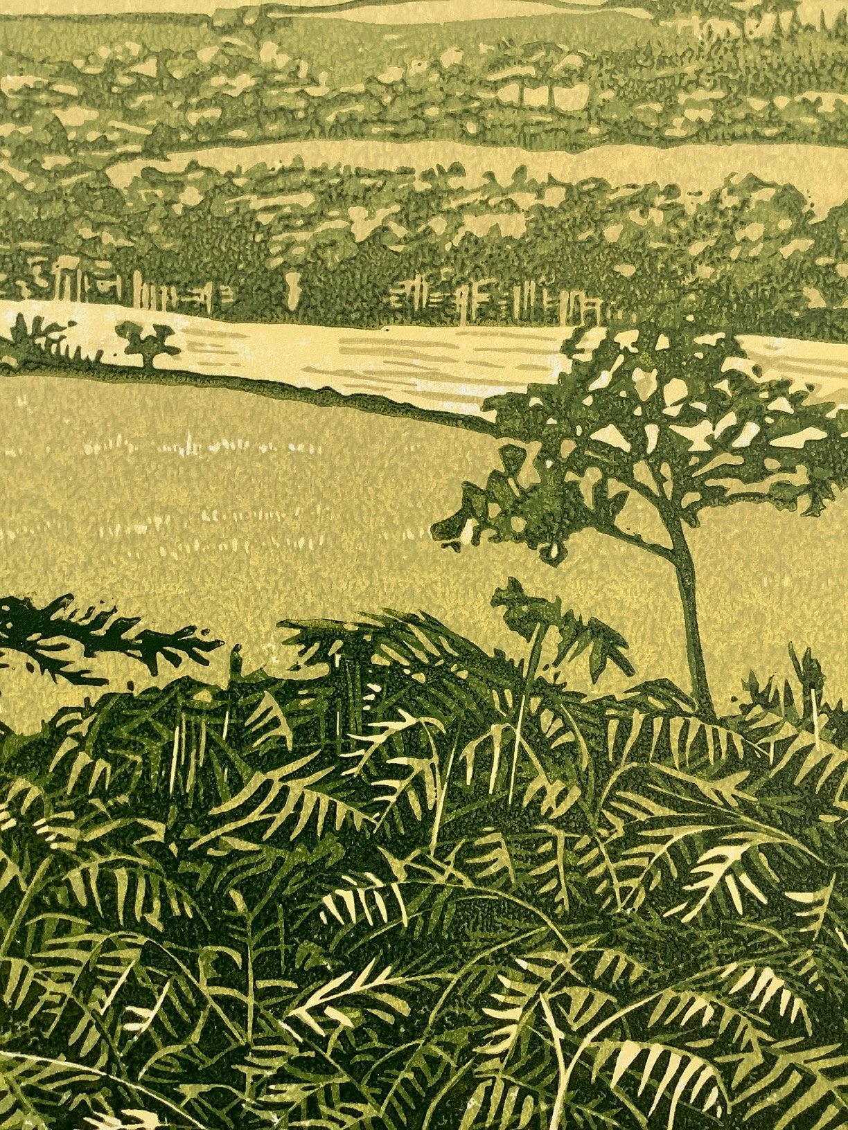 - An original reduction linocut print.